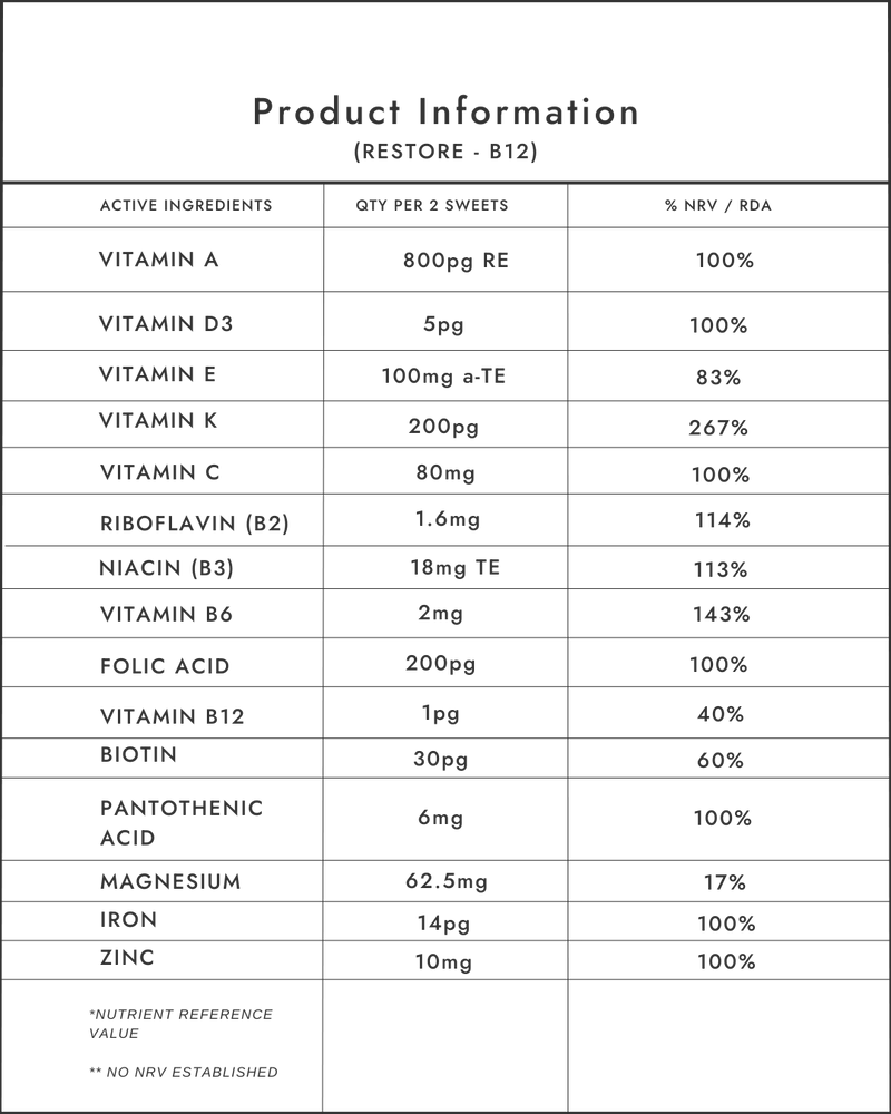 - Boosted Energy Levels: Replenish your energy reserves and fight fatigue with our potent B12 formula.