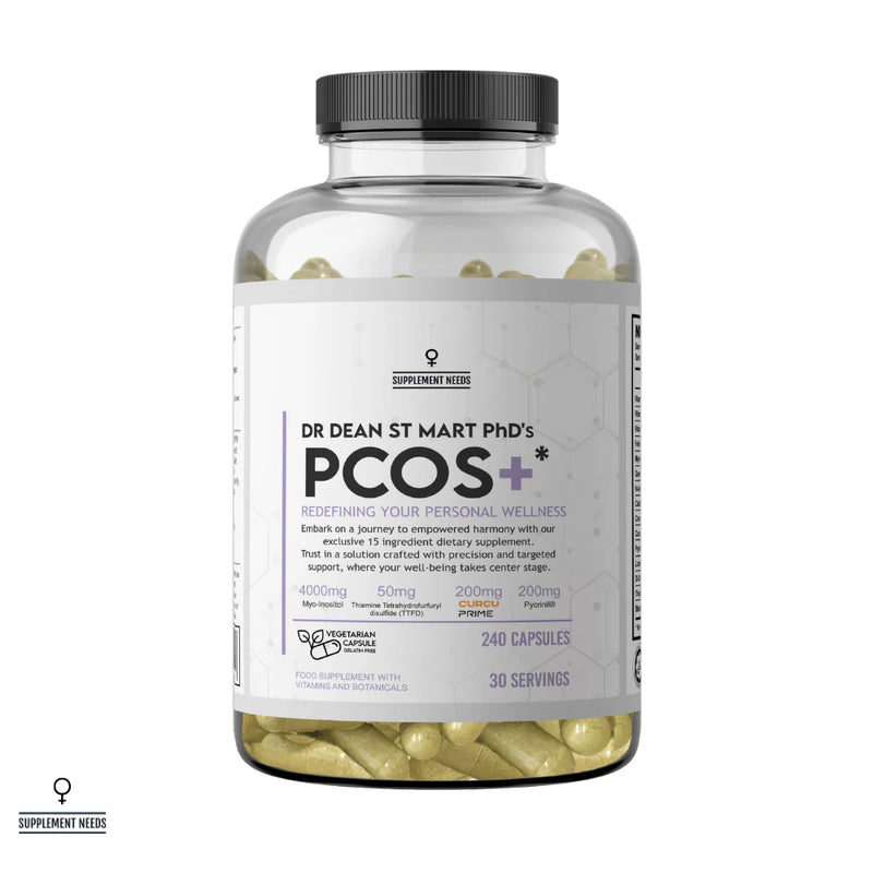 PCOS+ is a fully transparent, non proprietary product containing 15 ingredients of which all at efficacious doses as part of the Supplement Needs Dean St Mart Female Needs range.